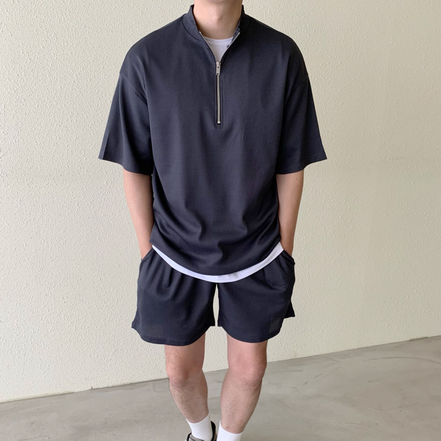 🇰🇷拉鍊短袖Tee (22SS37) 🇰🇷橡筋褲頭短褲 (22SS37-A) MADE IN KOREA 2色 Black/Charcoal 尺寸 FREE(cm) 肩寬57/胸圍62/袖長23/衣長74 *實際尺寸可能有1-3cm誤差 有意>>立即DM訂購 #韓國男裝 #韓國直送 #春季男裝 #男裝 #香港男裝 #冬季男裝